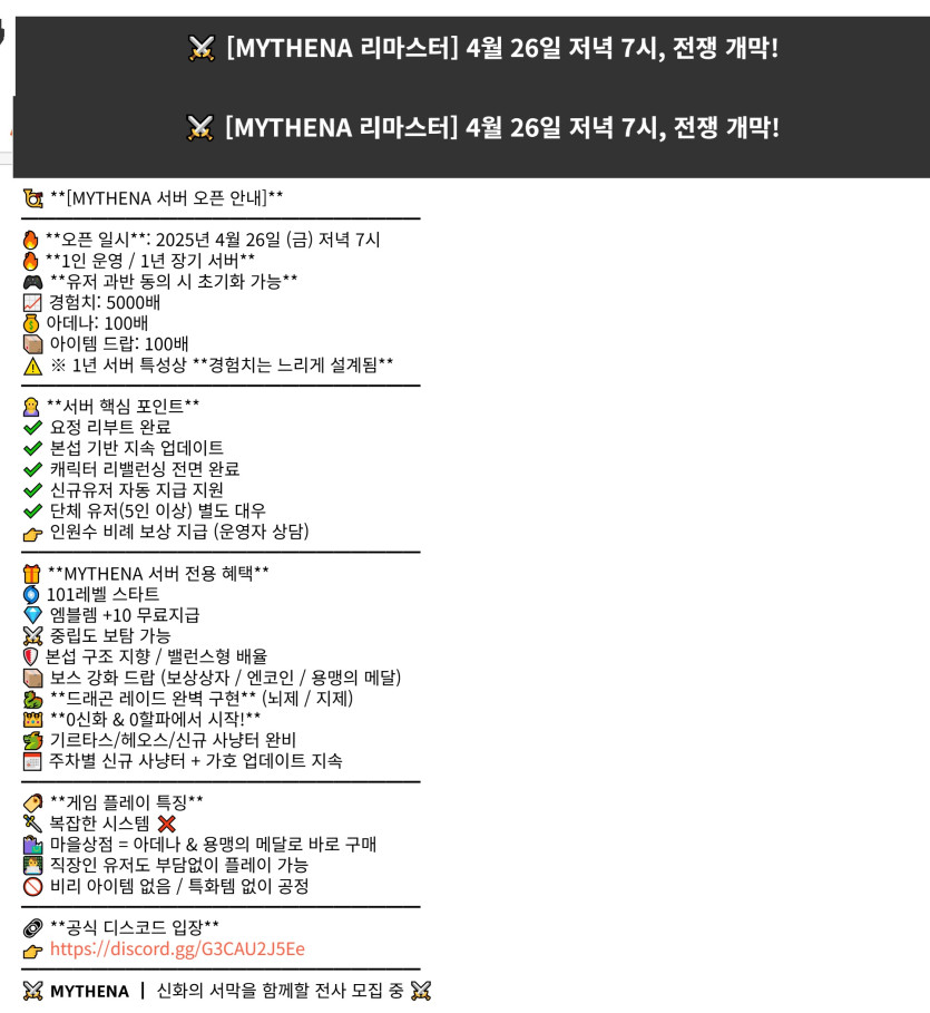 ⚔️ [MYTHENA 리마스터] 4월 26일 저녁 7시, 전쟁 개막!
